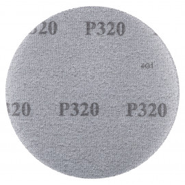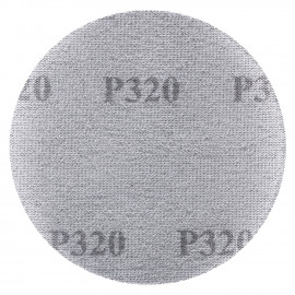 Malla abrasiva Ø50 mm, grano A320, con fijación de velcro. La estructura en malla reduce la obstrucción y asegura un lijado eficiente. Suministrada en paquetes de 10 unidades, se utiliza con protector