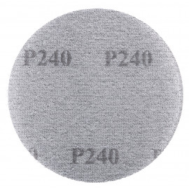 Disco para lijar madera, metal y pintura. Este abrasivo con fijación de velcro tiene un diámetro de 125 mm, grano A240 y se vende en paquetes de 10 unidades. Su estructura en malla evita la obstrucció
